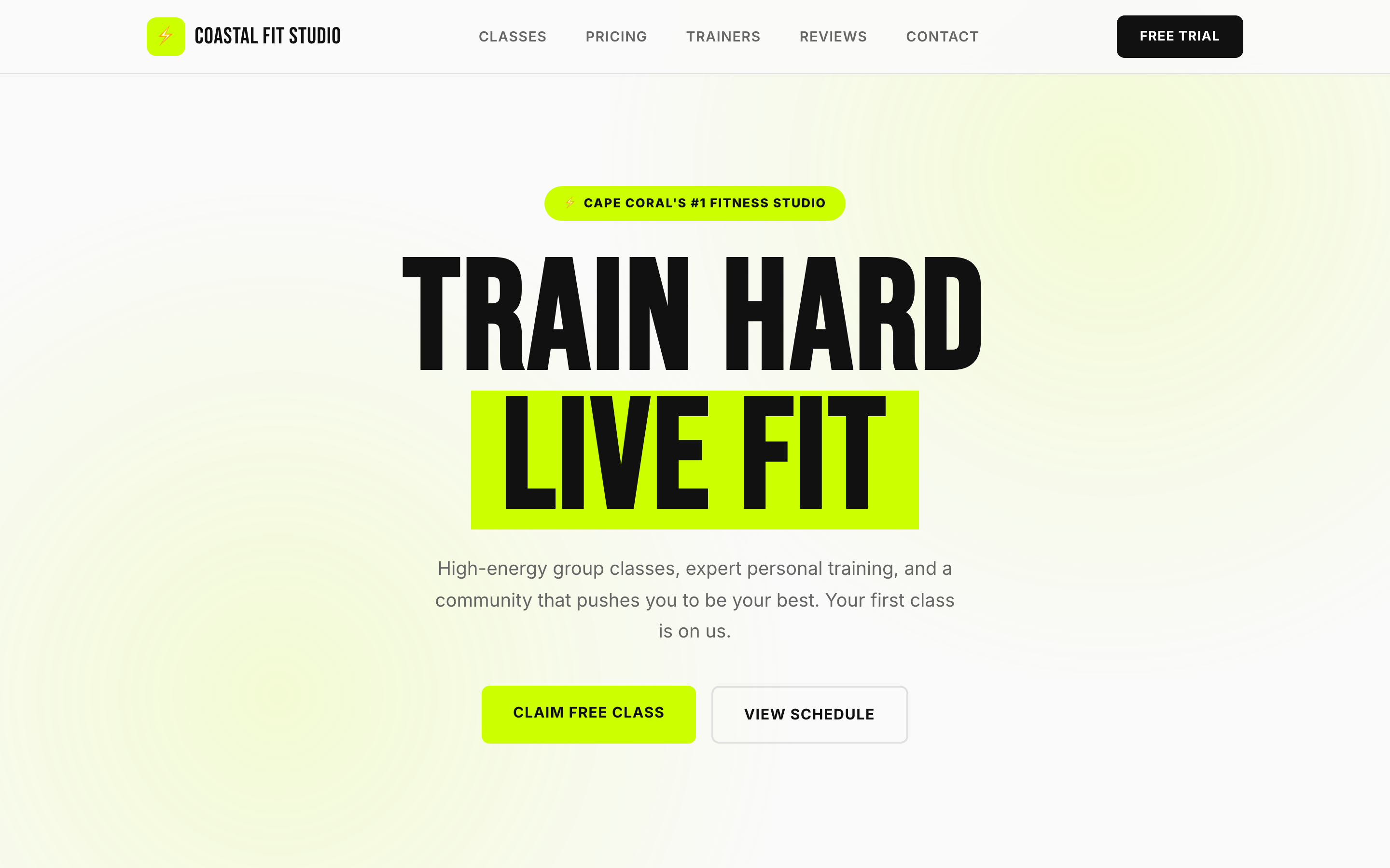 Class schedules, trainer profiles, membership tiers, and free trial signup