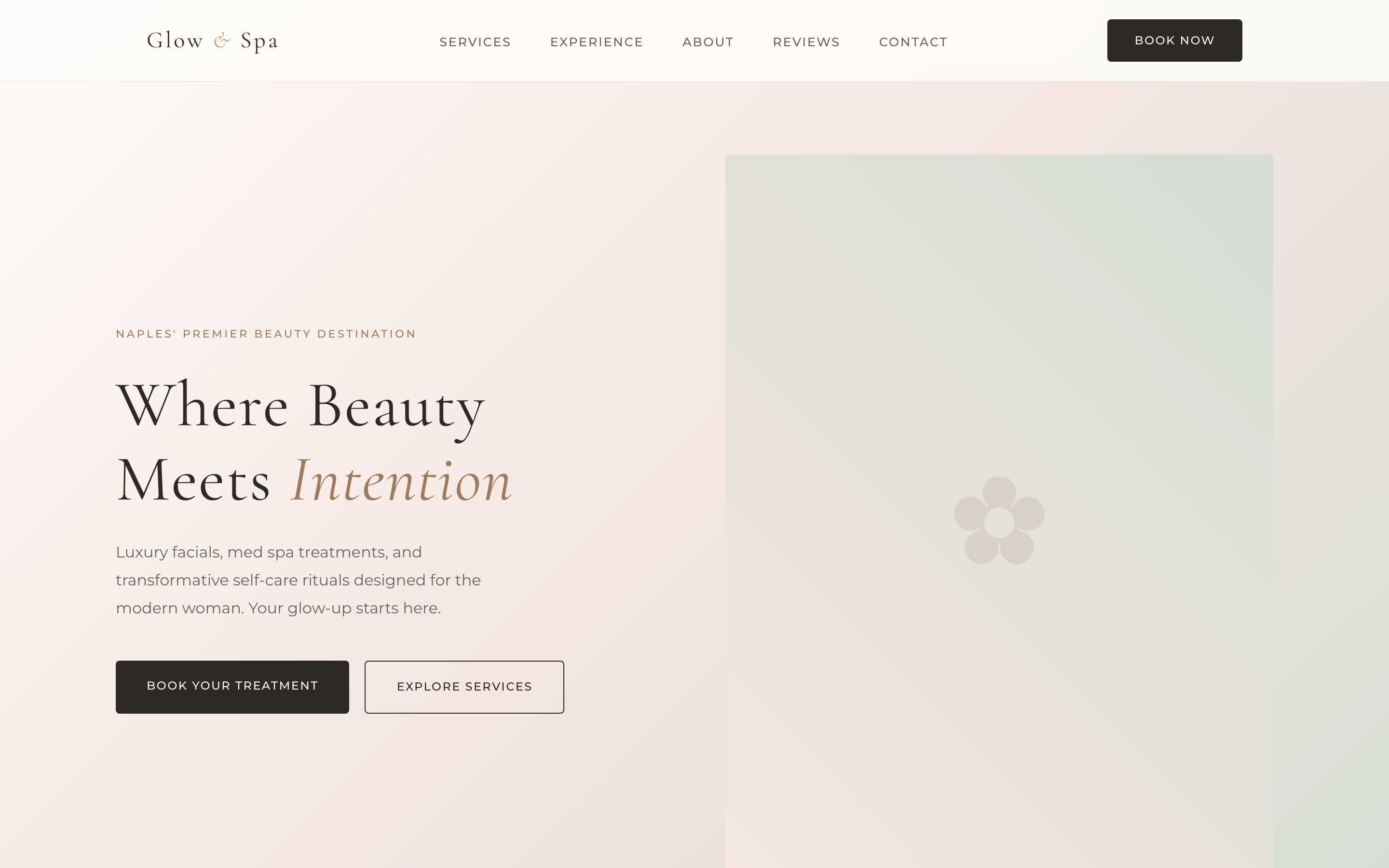 Treatment menu with pricing, online booking, and elegant brand experience